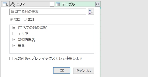 後は「テーブル」列から「都道府県名」と「連番」列を展開するだけです。